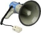 Nagy teljesítményű, 25W-os megafon, beépített szirénával.