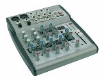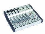8 csatornás keverő - Mic/ Line, 4 mono XLR szimmetrikus, 48V-os fantomtáppal. 2 sztereó szimmetrikus 6,3-as jack. ( 4 mono csatornának is alkalmas ). 2 sávos EQ a mono bementekhez, Peak Led minden mono csatornához. Tape in/out, AUX-Send.