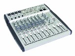 12 csatornás keverő - Mic/ Line, 4 mono XLR szimmetrikus, 48V-os fantomtáppal. 4 sztereó szimmetrikus 6,3-as jack. ( 8 mono csatornának is alkalmas ). 3 sávos EQ a mono csatornákhoz, 4 sávos a sztereókhoz. 2 AUX-Send ( pre/post), Peak Led minden mono csatornához. 10 ledes kivezérlésjelző, 60mm-es fader.