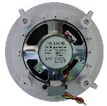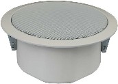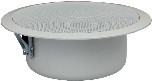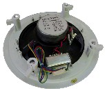 Álmennyezeti hangszóró, trafóval, fém ház, fehér színben, kifejezetten nedves környezetbe, például szaunába, fürdőszobába, hajóra. A polypropilén membránnak és a zárt műanyag háznak köszönhetően kiválóan ellenáll a nedves környezetnek.