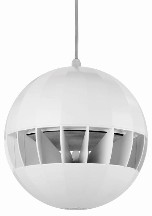 Függeszthető gömb hangfal, fehér színben, műanyag ház, nagyon jó hangú, beszédre és zenére is kiválóan alkalmas. Használata piacokon, intézményekben, áruházakban, fürdőkben, üzemekben stb. kül és beltéri használatra.