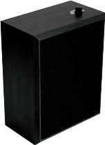 Falra akasztható kétutas fekete műanyag hangfal, forgókapcsolóval állítható teljesítménnyel.