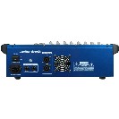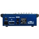 minden csatornán 2 sávos EQ, 1x5 sávos EQ az összes csatornán, sub kimenet aktív mélysugárzónak, 2x100 W-os / 4 ohm erősítővel. Beépített Digital Delay effekt.