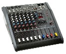 6 csatornás keverőerősítő, 6 mono csatornával, 2 mono csatornából lehet 1 stereo csatornát létrehozni, minden csatornán 2 sávos EQ,