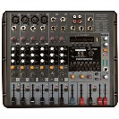 8 csatornás keverőerősítő, 4 mono, 2 stereo csatornával, minden csatornán 3 sávos EQ, 2 x 200 W-os / 4 ohm erősítővel. 7 sávos grafikus EQ az összes csatornára, fantomtáp, digitális multieffekt, AUX/RETURN, Rec Out/In, fejhallgató kimenet, 10 led-es kivezérlésjelző, kimenet: Speakon.